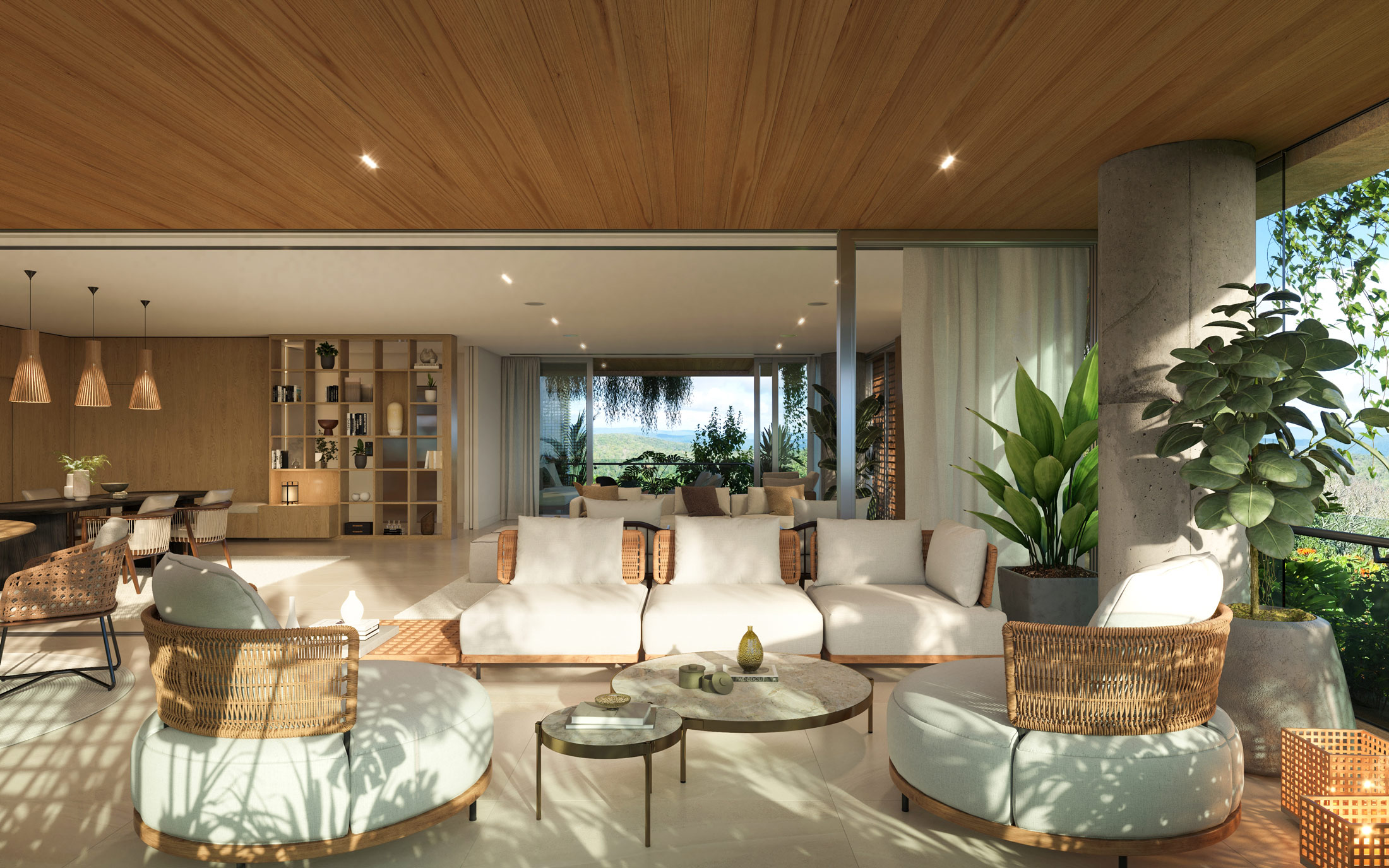 In the Tower 3 Apartment project, we have provided a complete range of interior design services, including renovation consulting and detailed interior design, innovative space distribution that maximizes spaciousness and enhances panoramic views, custom furniture design that incorporates wood as a unifying element and tropical details, kitchen design focused on functionality and style, meticulous decoration that reflects the client's character, and space visualization to ensure a coherent and harmonious final result. This project exemplifies our dedication to quality, sustainability, and customization in interior design.