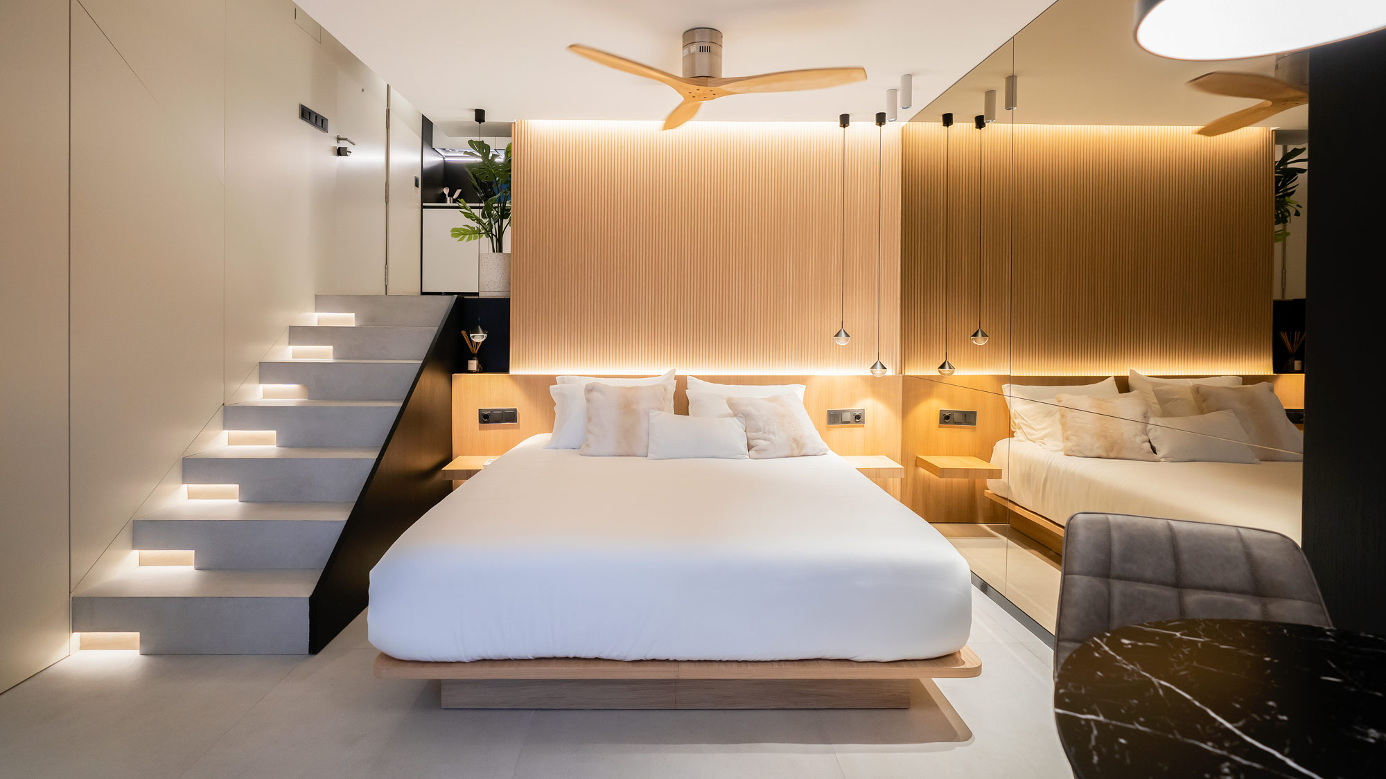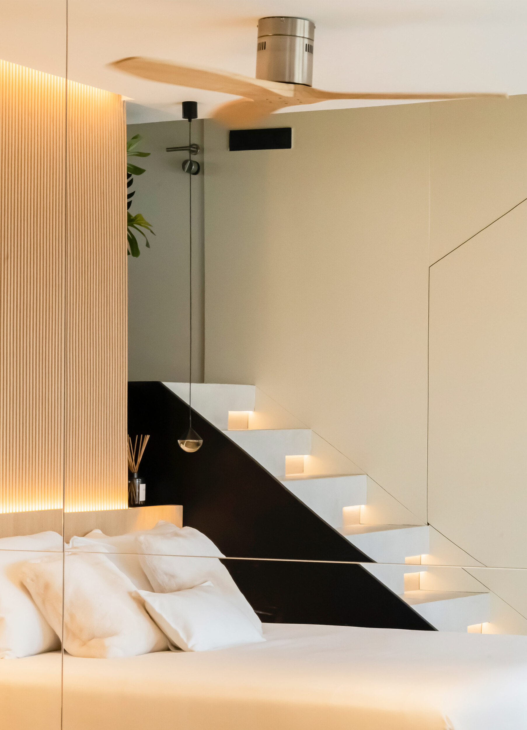 Hemos diseñado mobiliario a medida; desde la comodidad de las camas hasta la funcionalidad de los armarios y las mesas, cada pieza ha sido seleccionada y diseñada para realzar el espacio. La decoración es también uno de los elementos principales de este proyecto. Con el objetivo de crear un ambiente acogedor y atractivo, hemos incorporado accesorios y adornos de alta calidad que enriquecen el diseño interior y aportan ese toque final perfecto.