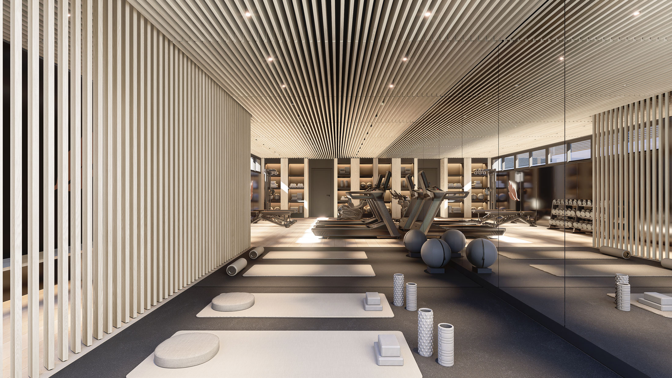 En Las Dovelas, el diseño interior de las zonas comunes se centra en la versatilidad y la adaptabilidad a diferentes usos. La gastroteca integra la cocina, el salón y las zonas de ocio mediante soluciones móviles que transforman el espacio según el momento. El gimnasio combina entrenamiento y yoga en un entorno sereno, mientras que el espacio de coworking ofrece zonas colaborativas y espacios individuales. Las zonas exteriores amplían el interior, creando entornos abiertos diseñados para desconectar y compartir.